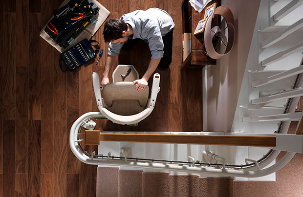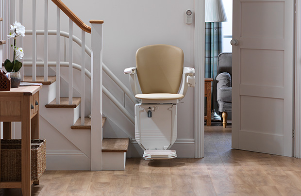 Com cinto de segurança e acabamentos personalizados, os elevadores de escada curvos da Stannah são uma solução prática e célere, já muito popular, para vencer as escadas curvas ou com patamares, dentro ou fora de casa.