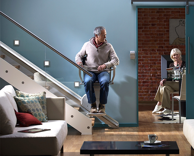 Com cinto de segurança e acabamentos personalizados, os elevadores de escada retos da Stannah são uma solução prática e célere, já muito popular, para vencer as escadas.
