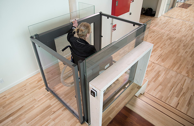 Plataforma elevatória de design simples, mas com grande capacidade de carga – até 400kg. Disponível em 3 diferentes tamanhos, para utilização interior ou exterior, vence desníveis até 1,25 metros de altura em contextos públicos ou privados.